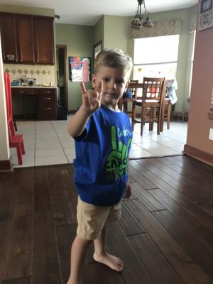 I came home Friday afternoon to find a pile of the awesome shirts that my incredible friend Amanda had done for us as an absolutely adorable fundraiser for Cade. These shirts ROCK! And they do because they have a sentimental story behind them. I remember the day she told me about an “idea” she had and she was gonna just surprise me with it, but asked me if I wanted to know what it was. She went on to tell me she was having t-shirts made in support of Cade and she had a memory that was very fond in her mind and heart about my boys. Anyone who knows me, knows I don’t care for heavy metal. Chris is the opposite. So since Ry was like 2, he’s asked me to listen to Beastie Boys. That was totally fine. Tolerable. Then as Cade came along, they both became obsessed with Beastie Boys as well as other things they’d start requesting when they got in my car like Slipknot and Metallica. I always would say “ummm, no. We do not listen to that music in mommy’s car. That’s daddy music.” It then became a joke almost, how much Chris could get them to love the music I hated. They’d play it sometimes when we were all cleaning the house or playing around and the boys would throw up the “devil horns” as they call them and jump around. I have a video of Rylan doing this as spit and drool is flying out of his mouth while he explains to me what those are called and why you make them. It’s one of my favorite videos. Amanda remembered all of this and it cracks her up too, so she said that she envisioned the devil horns hand symbol with the words “Cades Cancer Slayers” for the T-shirt logo. I started crying. Then she yelled at me to stop because she’d start crying. A few days later she took me out to dinner and showed me one of the preview images she had received from the shop and we talked more about it. She wasn’t sure if it was ok or if it was a stupid idea and if we hated it we could totally do something else. I loved it. Later that night I remember getting a text from her.