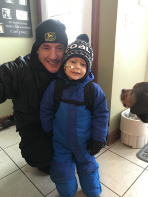 Cade had a blast at home! He got to enjoy the Thanksgiving holiday in his own home, which we were so grateful for. Even better was that he got to be home for the mounds of snow that were dumped on us in Illinois. He had so much fun playing out in the snow running around, riding the sled down our little hill in to the ditch, playing with his cousins. The morning of the snow he wasn’t even going to let his feeding stop him from going outside. We bundled him all up, put the feeding pump in the backpack, and out he went to help daddy snow blow the driveway and play. It was the cutest thing ever. He got to spend a lot of time with Rylan, which was great. We spent one day going through every single toy bin and reorganizing our toys while getting rid of a lot of toys to give to other kids who aren’t as fortunate. It was a long exhausting day, but it always feels so good to be organized. Let’s just hope it lasts! I keep reminding Rylan that he needs to put all his toys back where they live after he’s done. Haha. We also got to put away all of our fall decorations and decorate the house for Christmas, which I love doing. Cades favorite part was the tree. He kept asking when we were going to get it put up to decorate it and telling me I was taking to long. One of his favorite phrases these days. I was so excited when I remembered that I had found a beautiful fake Christmas tree last year on clearance after the holidays. Thank you Target! Otherwise I can honestly say I don’t know that we would have a tree up this year if it had to be a real one. This will be our first year for having a fake tree. I have always been a real tree kind of girl. But it’s such a process and I definitely didn’t have it in me this year to deal with it so it would have been up to Chris. Who I also don’t think had it in him by the excitement I got in response to reminding him I had bought the fake tree. Haha.